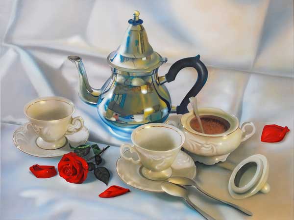 Sus obras abarcan temas variados como flores, cristales, bodegones y figura.